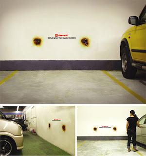 Stickers were placed in selected car park locations and car workshops where M-Tech Plasma HID lights are sold in Malaysia.... It delivers the message that these headlights are 300% brighter than regular headlights. The burn-effect sticker from the headlights really leaves an impression.